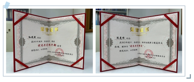 集团团委所属上海外贸界龙彩印有限公司团支部书记孙晓燕同志被评选为“优秀共青团干部”、上海界龙艺术印刷有限公司制袋部门的陈克伟同志被评选为“优秀共青团员”。