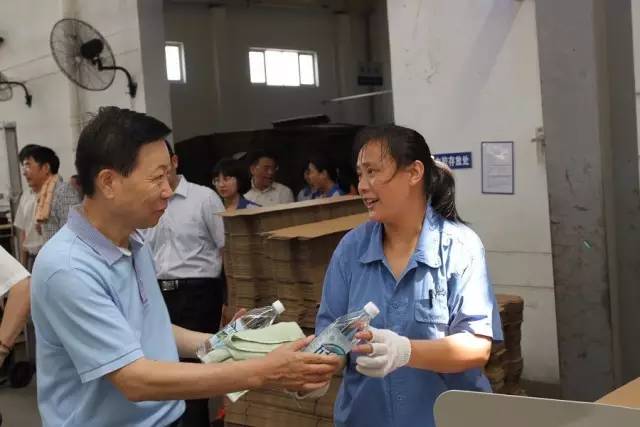 集团领导一行先后前往捷达分公司、外贸界龙、纸箱分公司、金属拉丝、精细研磨、现代纸品、艺术印刷、永发包装、御天分公司等企业,与员工亲切握手交谈,嘱咐大家要注意防暑降温,做好生产安全措施,克服困难,为企业的发展做出新贡献。同时叮嘱各企业的经营管理干部要做好员工的防暑降温工作,合理安排好工作和作息时间,应对高温天气,保证自身的健康,消除各类高温天的安全隐患,确保工作井然有序、有条不紊。