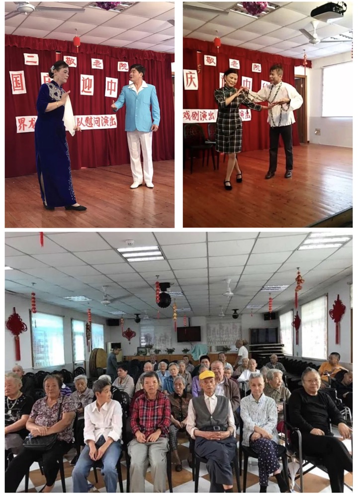 迎中秋、庆国庆,9月29日,上海界龙实业集团股份有限公司行政党支部为共建单位——川沙第二敬老院,送上老人们喜闻乐见的多部沪剧表演节目——《庵堂相会——看龙船》、《大雷雨——人盼成双月盼圆》等沪剧折子戏。