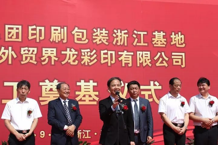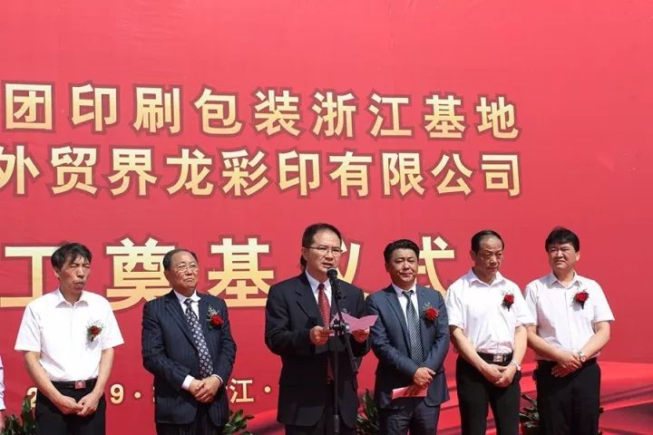 随后,中共新仓镇党委书记张国跃致辞,对界龙平湖印刷基地开工建设表示祝贺;