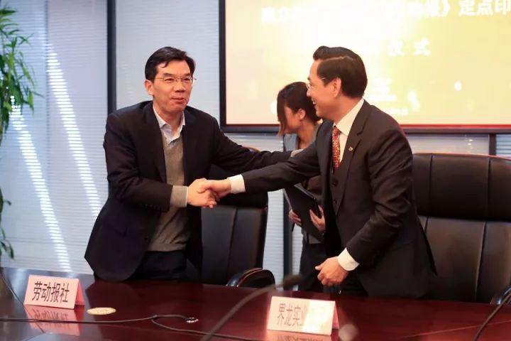 劳动报社是上海市总工会主办主管的事业单位,历史悠久,拥有丰富的新闻媒体资源;界龙实业集团是以包装印刷为主业的上市公司,名列中国印刷(综合)百强企业前十强。此次战略合作签约仪式上,劳动报社与界龙实业集团建立战略合作关系,双方将整合资源、优势互补,展开包括《劳动报》在内的报刊业务资源整合共享,在发展文化创意产业方面也将开展合作,携手为上海文化产业发展作出贡献。