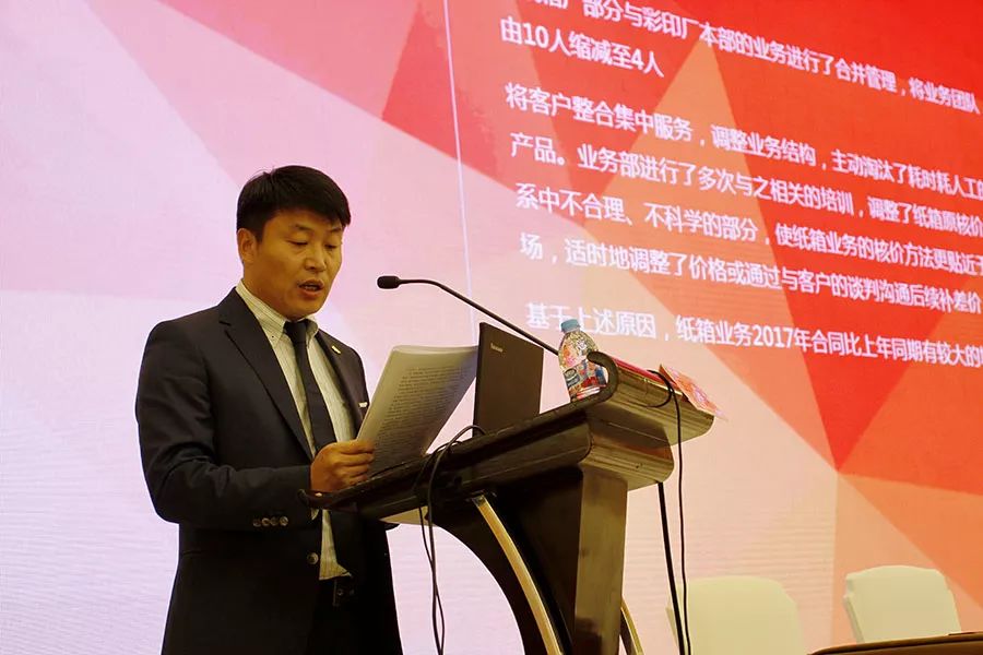 13日下午,大会首先进行代表交流发言。界龙实业包装印刷事业部总经理、外贸界龙总经理费屹豪作《旧貌换新 从心出发》的发言,介绍外贸界龙2017年的工作亮点;