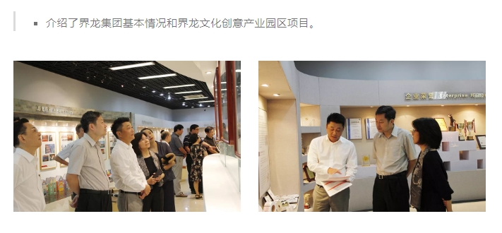7月19日上午,文化和旅游部艺术司司长、浦东新区副区长诸迪莅临上海界龙集团调研。川沙新镇党委书记、人大主席王小君,党委委员、副镇长徐闽,人大副主席周键参加调研。界龙集团党委书记、董事会主席费钧德,界龙实业集团董事长费屹立、总裁沈伟荣,界龙文创产业策划营运团队参加座谈、交流。