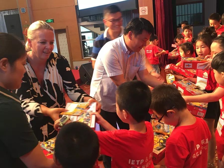 公司、IETP、LEGO的领导,亲自把一盒盒各自准备的精美礼物分发给孩子们,孩子们笑逐颜开,满满的收获。