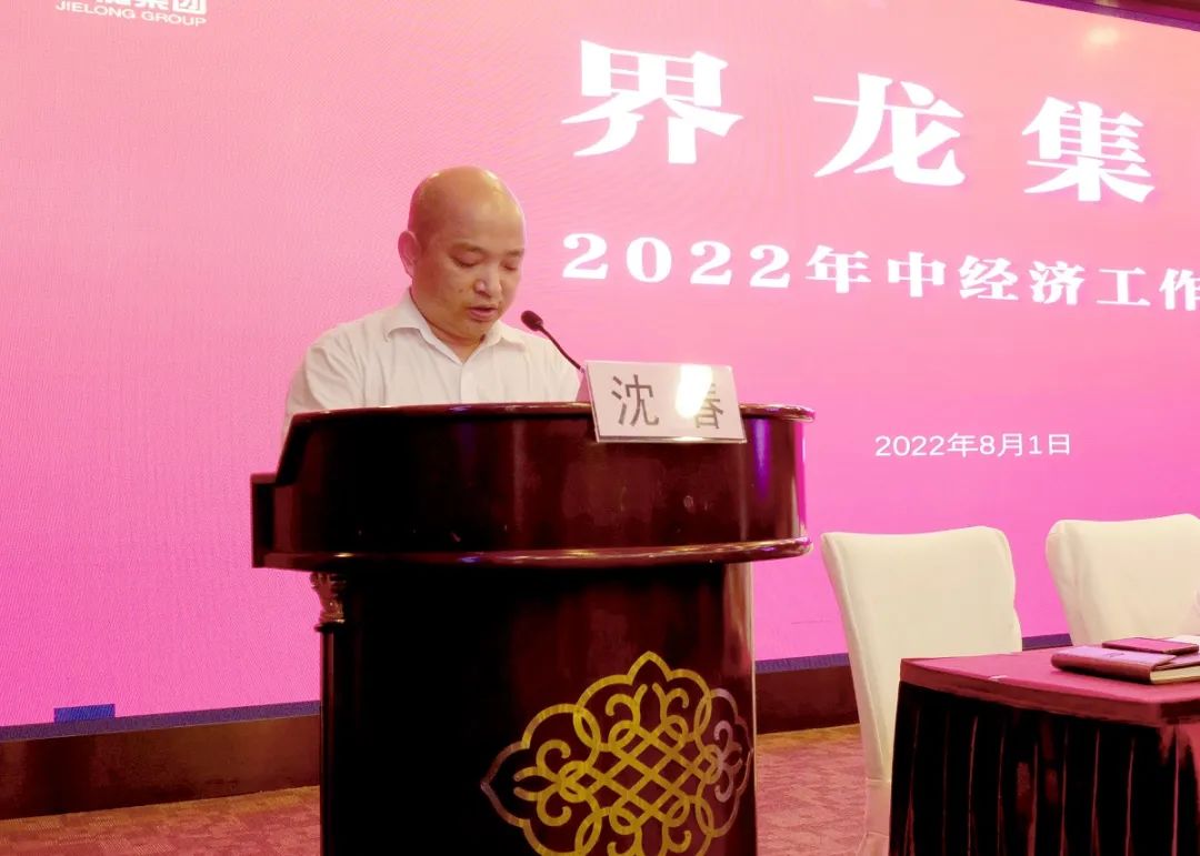 首先,由界龙集团总经理费屹立先生作《界龙集团2022年中经济工作报告》。报告概括了界龙集团2021年以来统筹疫情防控和经济发展两大工作,在印刷、商业物业、建筑工程、商贸服务等各个领域的主要工作和运营情况,让大家清醒看到集团发展面临的主要问题和困难;报告也提出了2022年虽然企业经营受疫情影响较大,但是我们要按照“疫情要防住,经济要稳住,发展要安全”的总要求,坚定发展信心,迎难而上,奋发有为,围绕发展目标扎实推进各项工作。