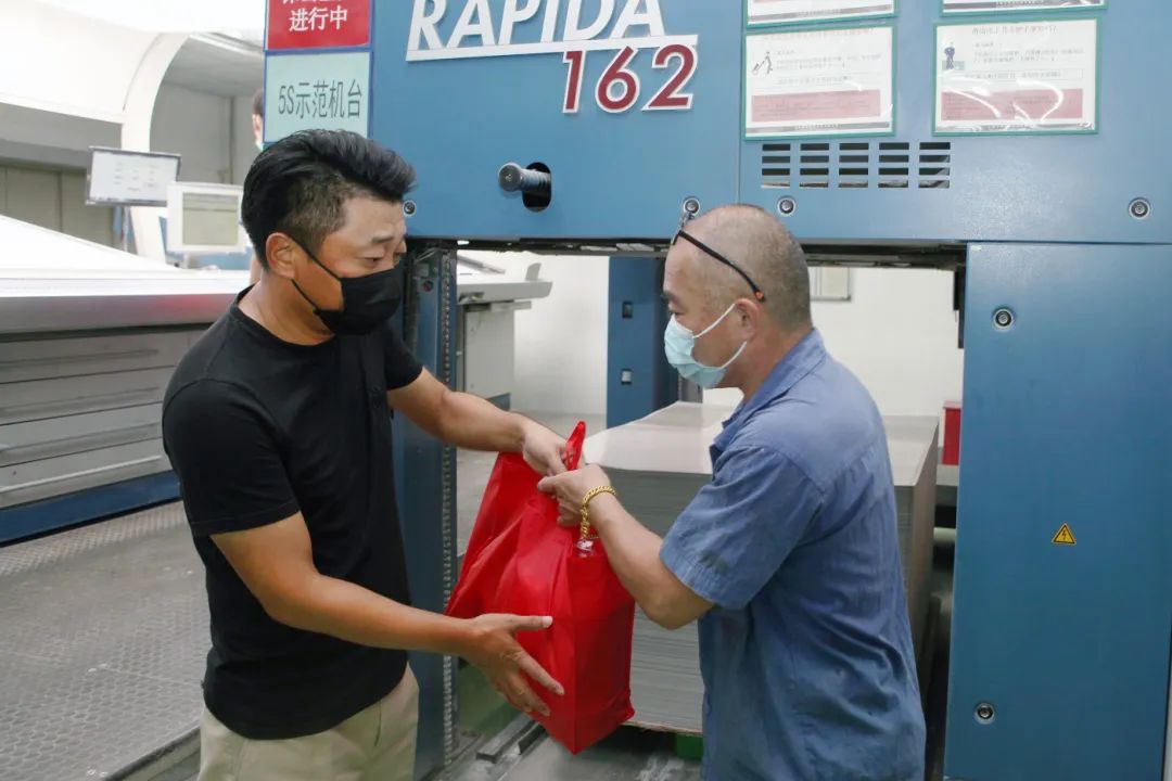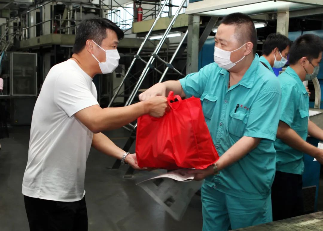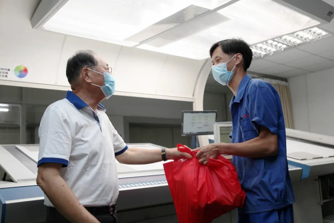 8月3日和8月4日,界龙集团董事会主席费钧德、总经理费屹立、党委书记兼副总经理费屹豪等主要领导率队前往外贸界龙、界龙现代、中报印务等工业企业,走访慰问奋战在生产一线的广大员工。对他们战高温、保生产,用责任和担当经受住高温“烤”验,表示亲切慰问,并亲手送上防暑降温用品。
