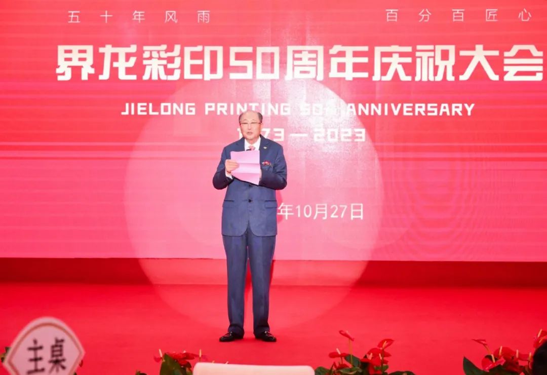 最后,中国包装联合会常务副会长兼秘书长王跃中致辞。他指出,界龙彩印经过50年发展,取得丰硕成果,成为行业黄埔军校和翘楚,创始人和全体界龙人的拼搏精神令人敬佩。在当前形势下,我们要比以往任何时候充满信心、坚定信念,以新一代包装事业新局面,开创包装行业新的壮丽征程!希望界龙集团做好传承接力、发扬光荣传统,不忘包装初心,牢记强包使命,成为百年企业,为共同建设包装强国做出更大的贡献。