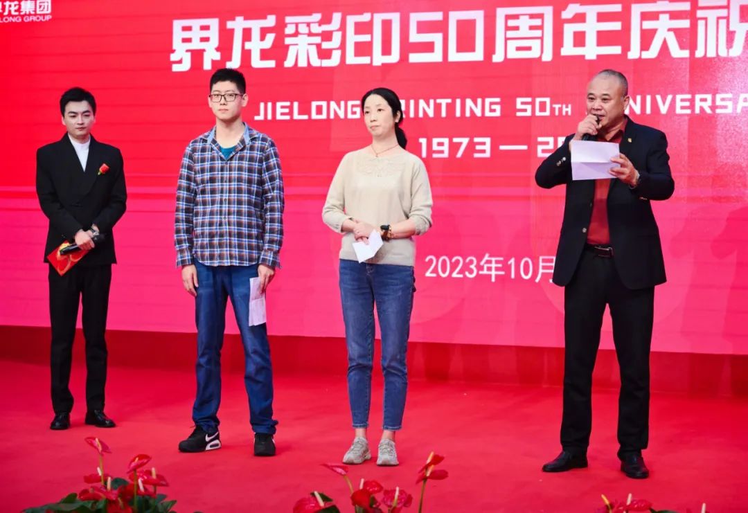 忠诚铸就厚重,勤奋书写辉煌。庆典仪式上,还举行了系列颁奖仪式,对“2023年度界龙集团印刷企业优秀员工”、“界龙彩印50周年系列文体活动获奖人员”、“界龙集团优秀文体活动组织者”进行表彰,集团领导上台颁奖并与获奖者合影。