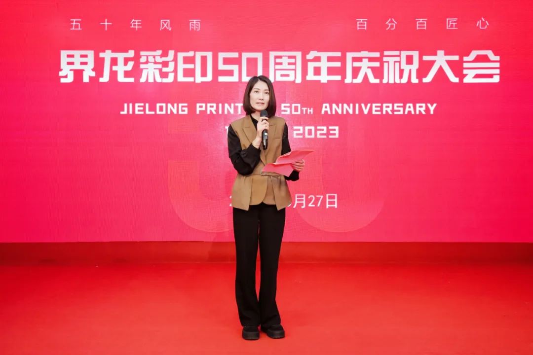 随后,界龙彩印五十周年庆典正式开始。仪式由界龙集团党委书记、副总裁费屹豪主持。